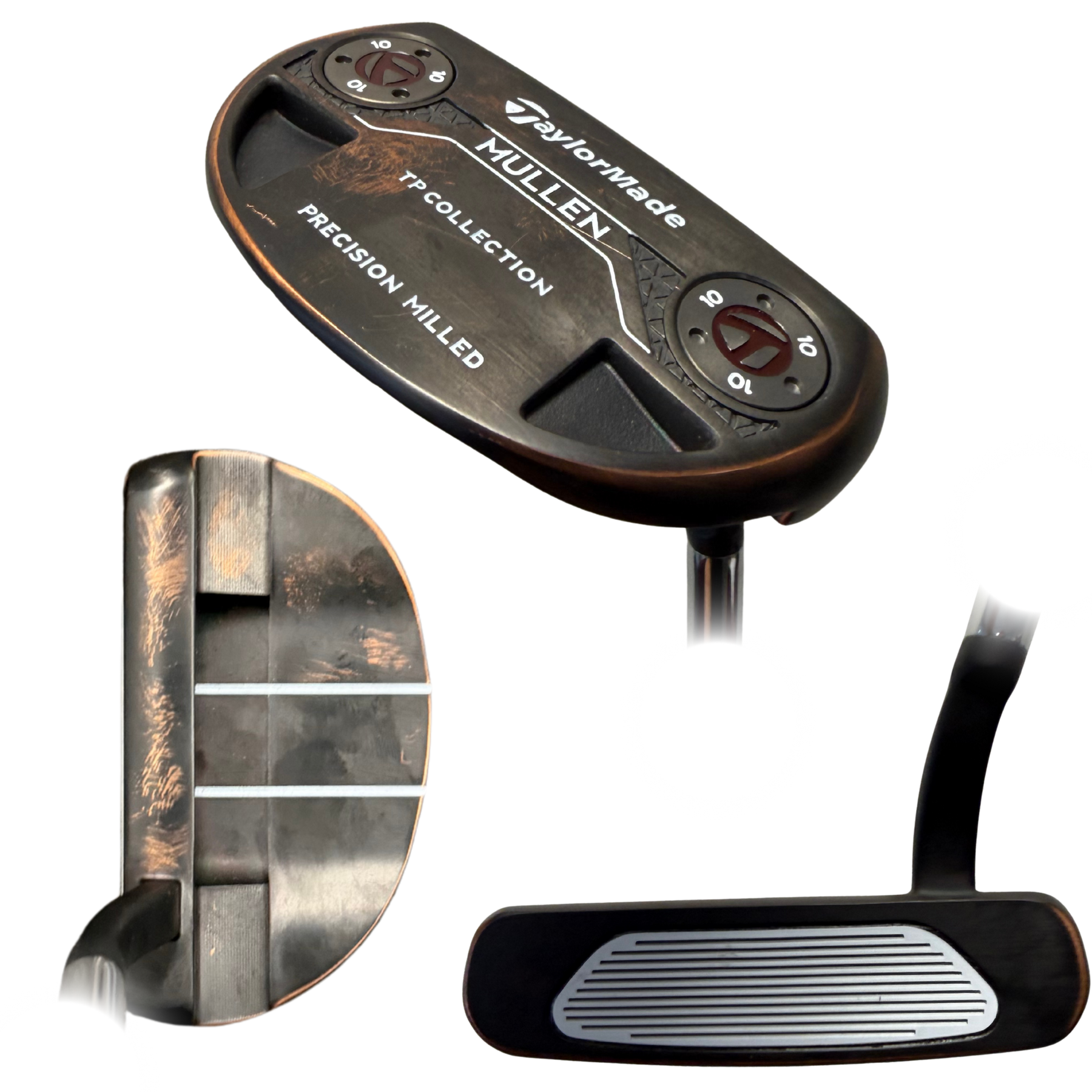 NEW TaylorMade Tour Issued Aged Copper Finish Mullen Putter, Flow Neck, 35in with matching headcover